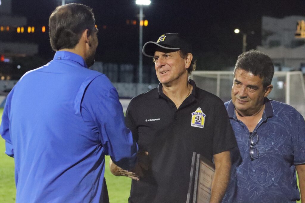 Playa del Carmen, Solidaridad, (MARCRIX Noticias), a 27 de noviembre del 2023.- La directiva del Inter Playa del Carmen encabezada por Amador Gutiérrez, realizó durante el medio tiempo del partido Inter Playa del Carmen contra Atlético Aragón, el reconocimiento a Carlos Bracamontes por cumplir cien partidos dirigiendo al equipo “Gigante de Quintana Roo”