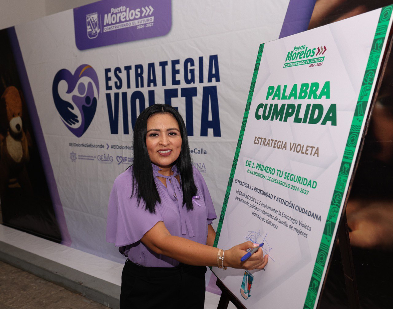 “Alineados con las acciones que ha emprendido nuestra gobernadora Mara Lezama en el combate a la violencia contra las mujeres se puso en marcha la ‘Estrategia Violeta’ que engloba acciones de tres instancias vinculadas para la atención de quienes pudieran ser víctimas de agresiones, con Círculos de Mujeres, 50 comercios aliados que se suman como Espacios Seguros y el Espacio de Acogida Violeta”, señaló Blanca Merari.