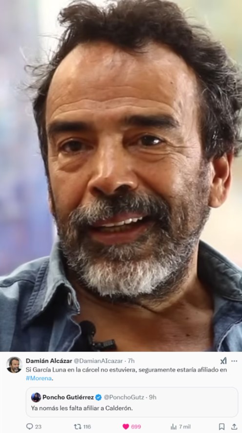 “Si García Luna en la cárcel no estuviera, seguramente estaría afiliado en Morena”, publicó, haciendo referencia al exsecretario de Seguridad Pública, vinculado con el crimen organizado.
