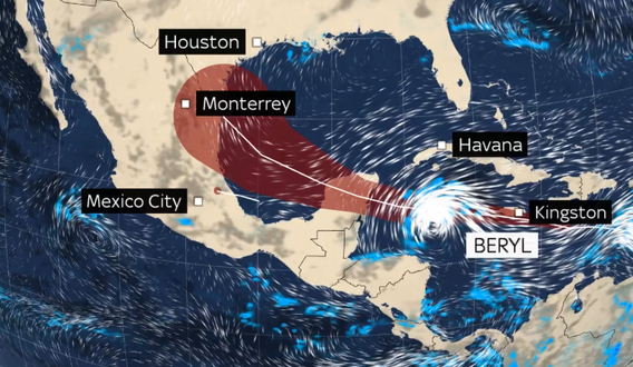 Beryl, la tormenta tropical más rápida en alcanzar la categoría 5 durante la temporada de huracanes en el Atlántico, se ha ido debilitando tras su paso destructivo por el Caribe.