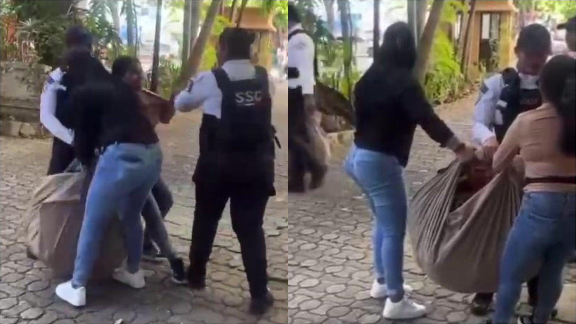 De acuerdo con un video difundido en redes sociales, se observa el momento en que inspectores y elementos policiacos decomisaron los productos a una mujer que se dedicaba a la venta informal.