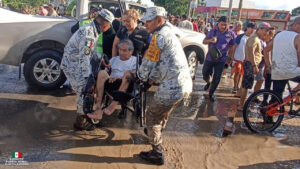 Durante estas labores, se llevaron a cabo operaciones aéreas que permitieron evacuar a personas de zonas de alto riesgo, garantizando su traslado seguro hacia lugares protegidos. De manera simultánea, los efectivos distribuyeron despensas, agua embotellada y agua purificada a las comunidades más vulnerables.