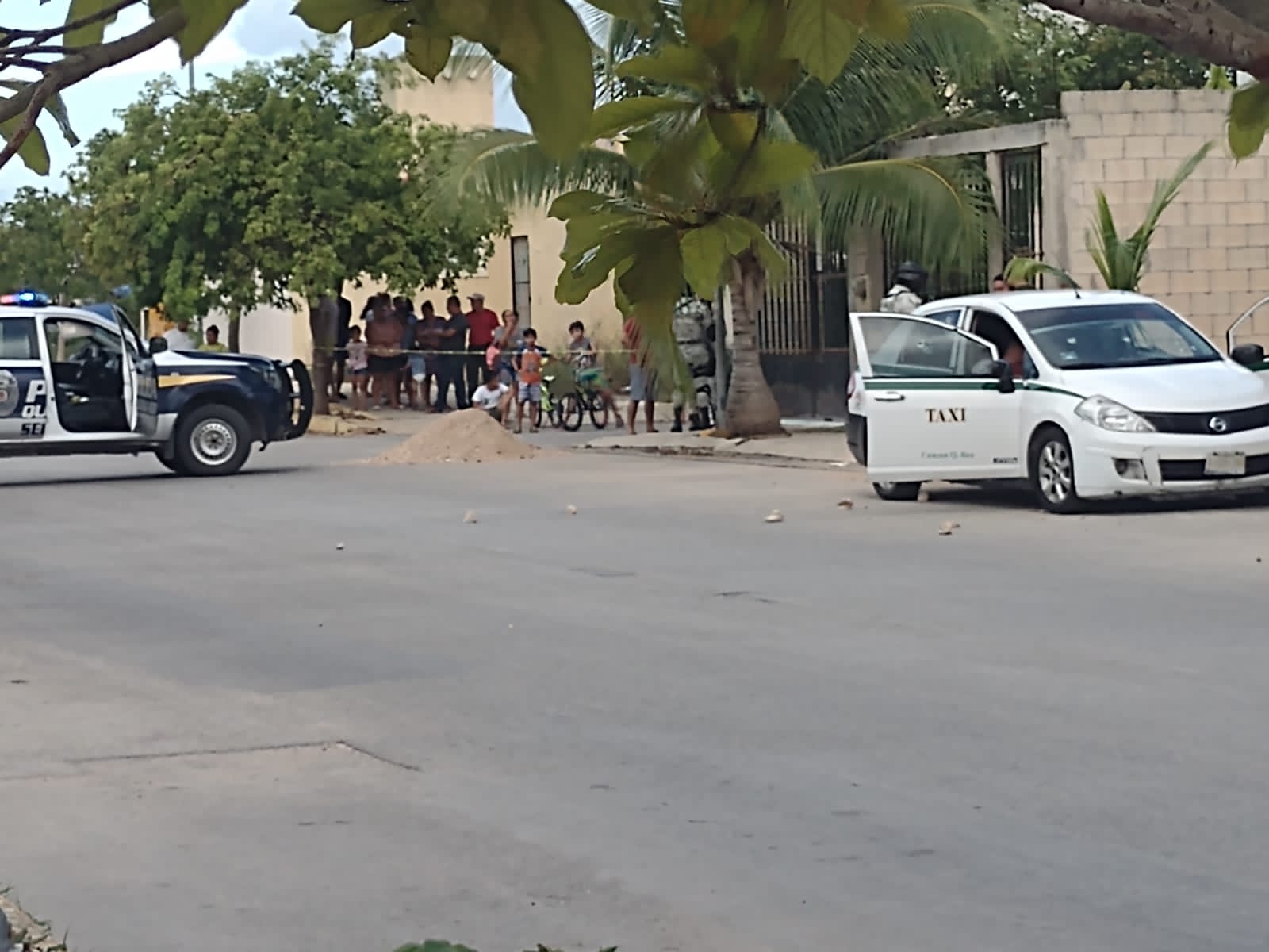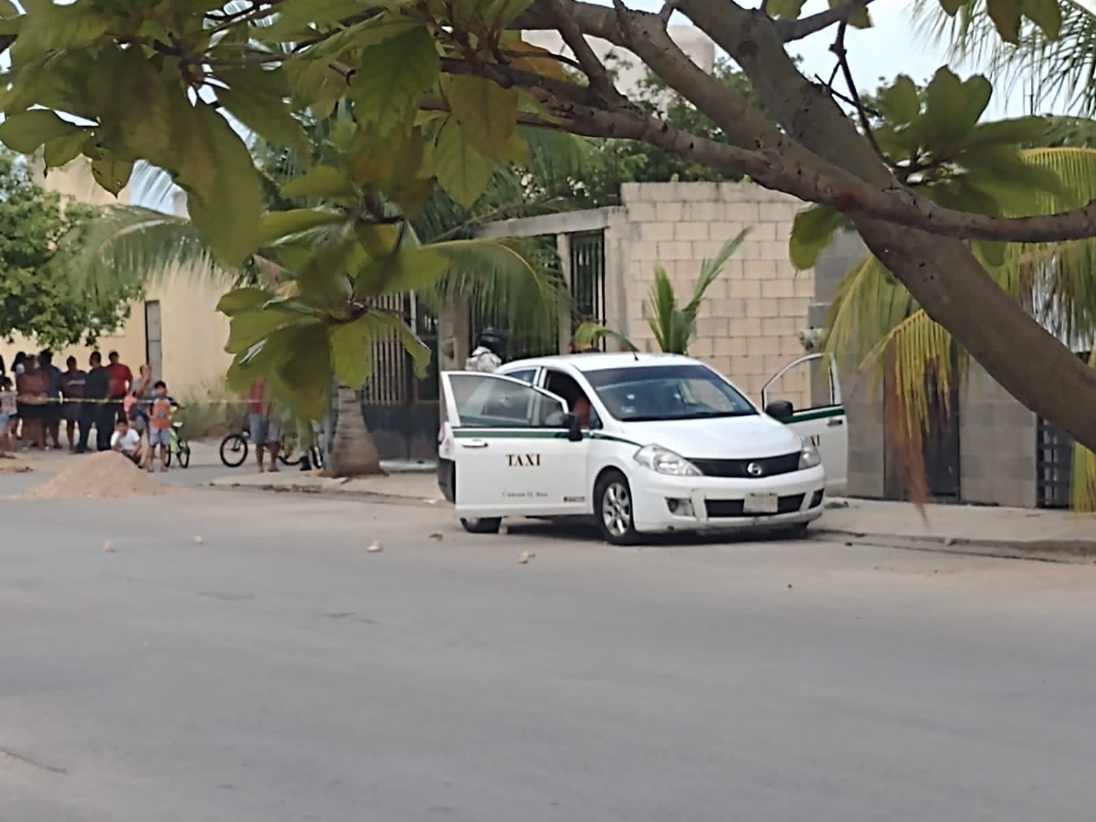 El vehículo donde quedó el hombre sin vida tiene los colores de taxi del Sindicato Andrés Quintana Roo de Cancún, pero sin número económico.