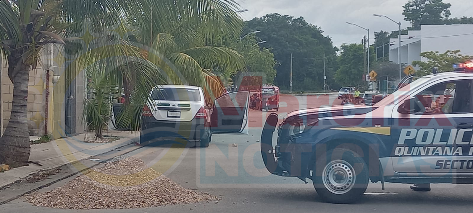 Cancún (Marcrix Noticias).- Un ataque a balazos se registró hoy en la tarde en la calle Claveles del fraccionamiento Villas del Mar Plus de la Región 250 de Cancún, dejando un herido y otro hombre más hombre sin vida dentro de un vehículo blanco Nissan modelo Tida.