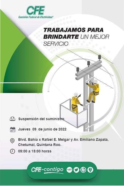 En este sentido, la CFE informó lo anterior para evitar la rumorología de apagones que pudiera surgir durante el día, cuando el servicio de energía eléctrica sea suspendido por más de 5 horas en la capital del estado.