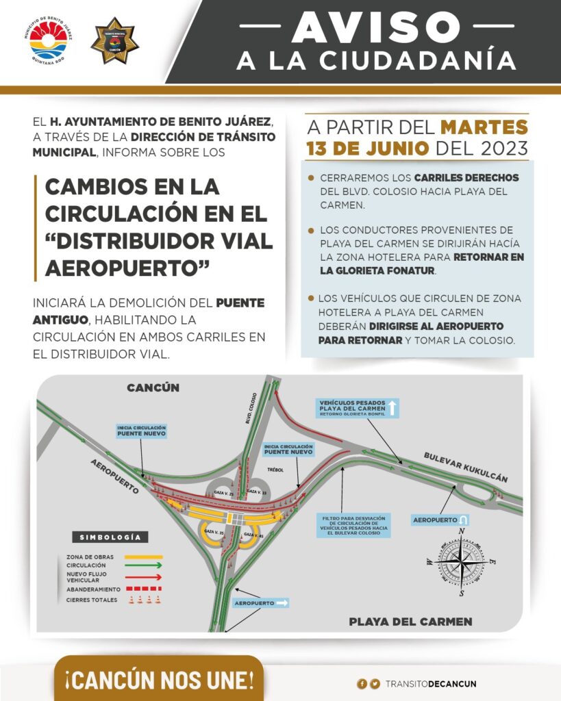 Cabe recalcar que el nuevo trébol vehicular mejorará la conexión con el Aeropuerto de Cancún e interconectará con otras avenidas como la Huayacán.