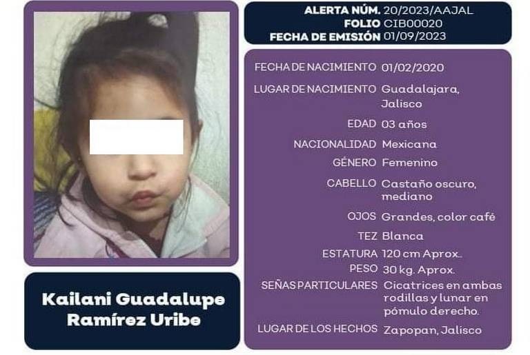 El pasado 30 de agosto los familiares de la pequeña, identificada como Kailani Guadalupe, la reportaron como desaparecida y al día siguiente su madre, quien padece esquizofrenia, fue localizada deambulando por las calles de Guadalajara, donde pedía ayuda porque “la policía” se había llevado a su hija.