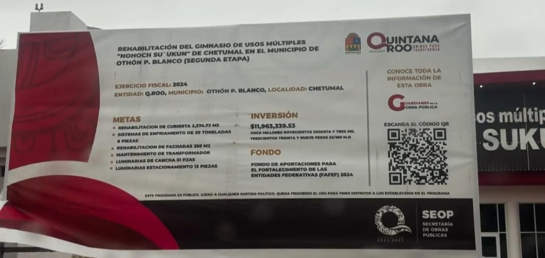 El Gimnasio Nohoch Sukun, el Palacio de los Deportes Erick Paolo Martínez, el estadio de béisbol Nachan Ka’an y el estadio de futbol profesional “José López Portillo”, ubicado frente al Aeropuerto Internacional de Chetumal, se encuentran en pésimo estado y totalmente abandonados, según demuestra en el video que grabó para ello.