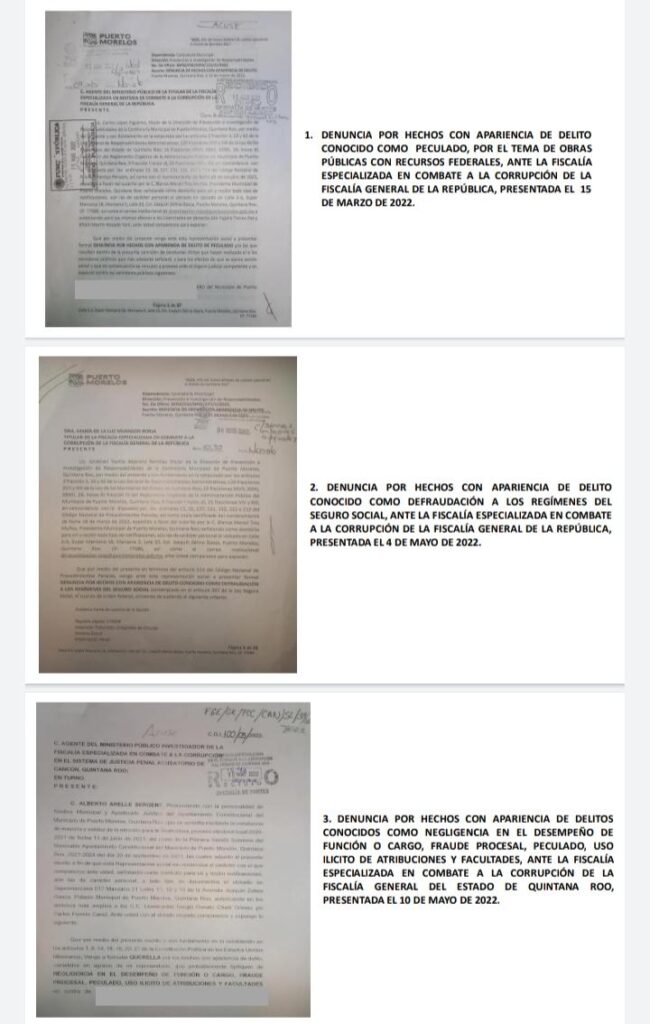 Entre las denuncias que hay destacan las de peculado, defraudación, así como negligencia en desempeño de sus funciones, las 2 primeras ante la Fiscalía Federal y tercera ante la Fiscalía Anticorrupción de Quintana Roo.