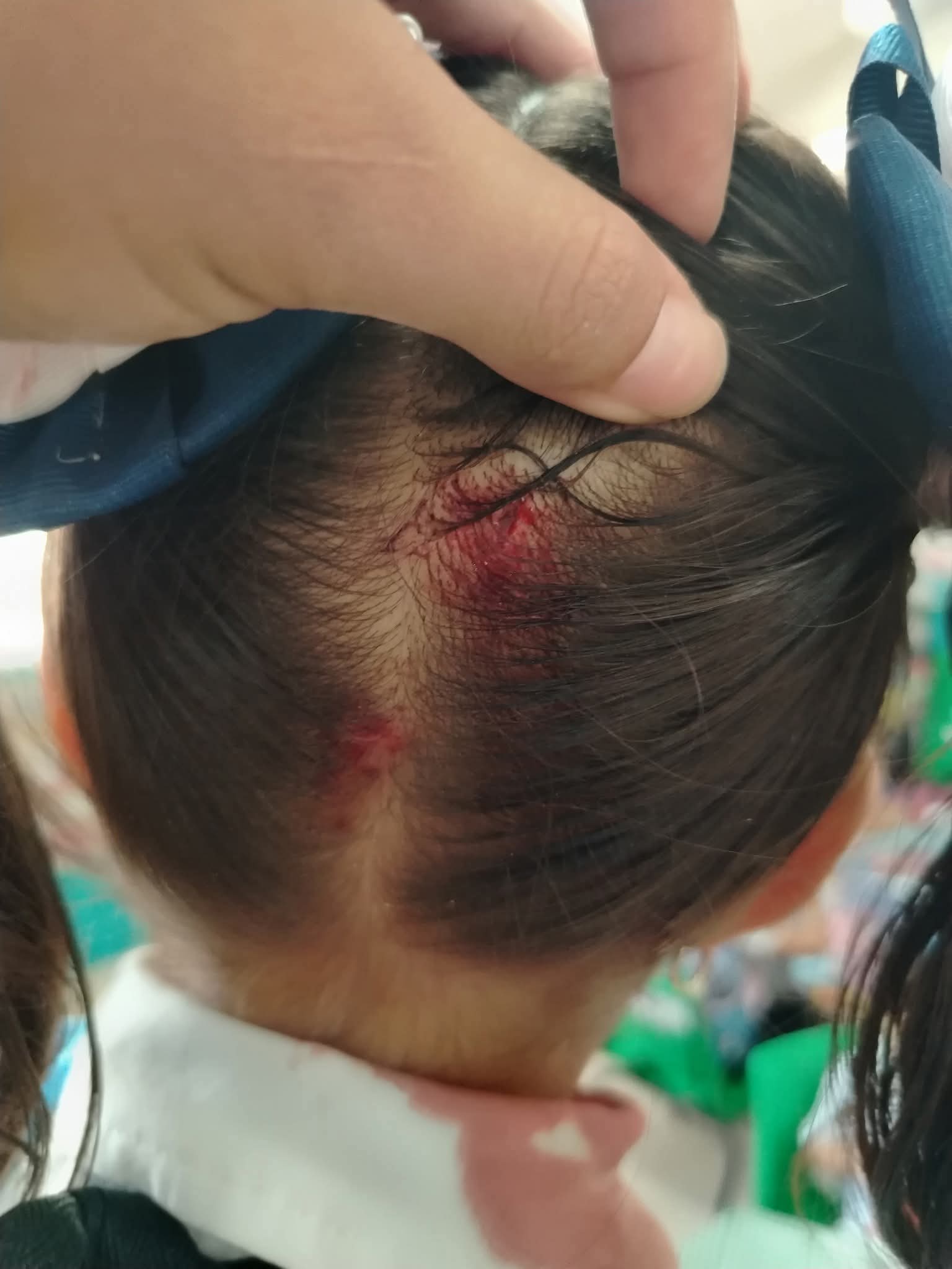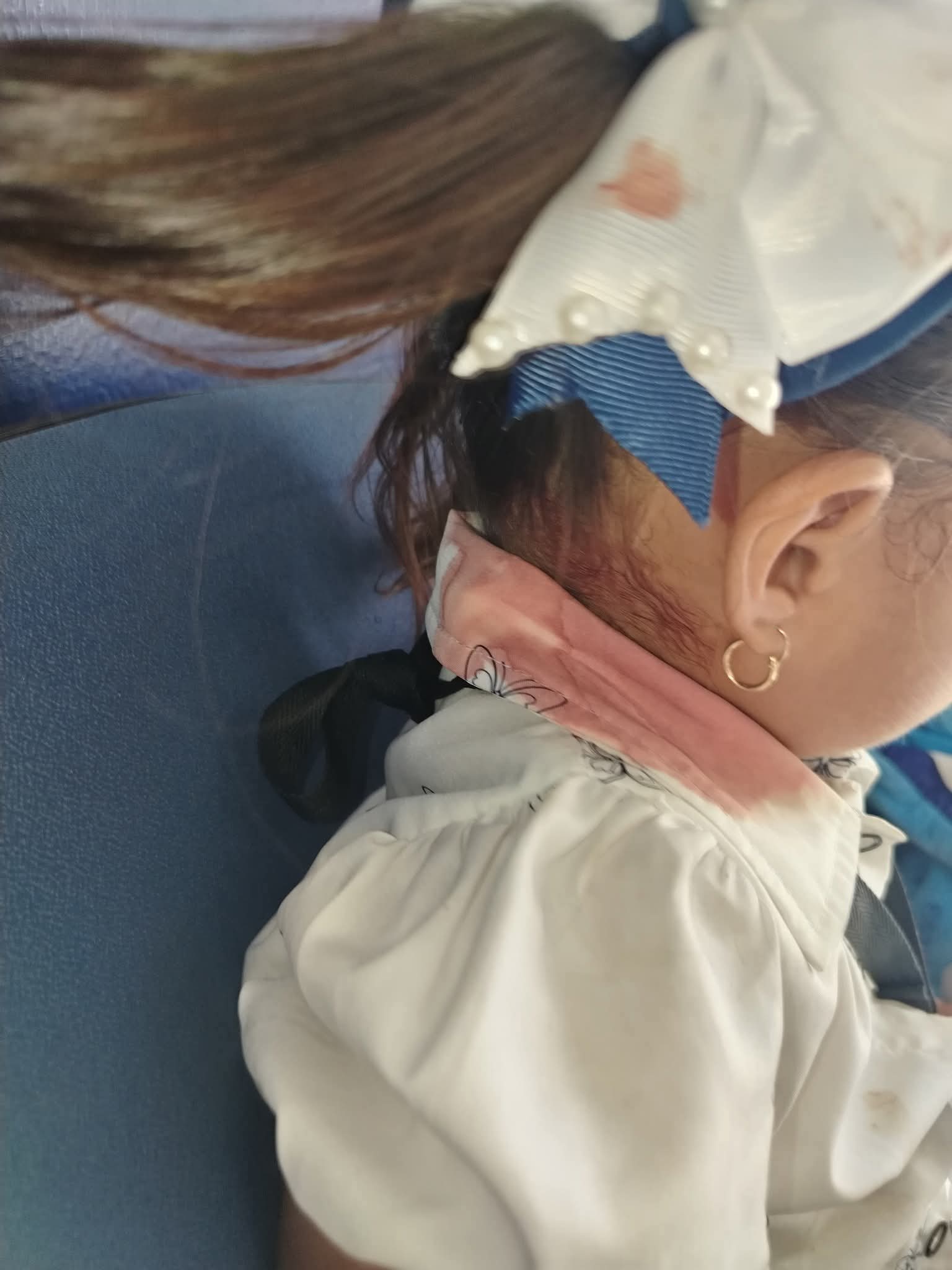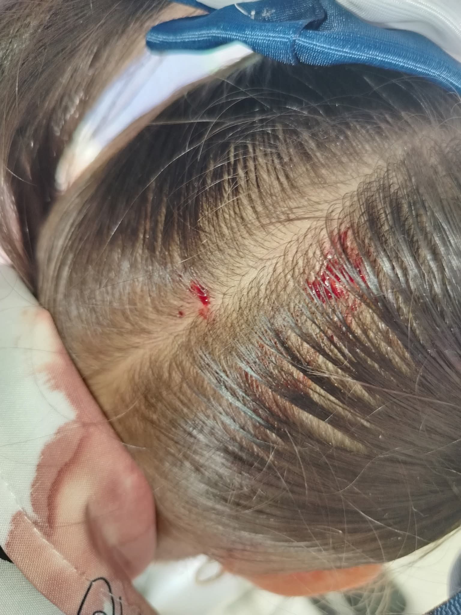 Me acerco al área de lavabos porque tenía la herida expuesta, con sangre viva y brotando aún y la maestra me dice “vamos a cambiarle la blusa” lo cual no hice y fui directo con la directora le comento lo que sucede, le enseñó las heridas de mi hija y solo recibí de respuesta