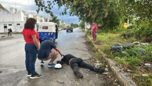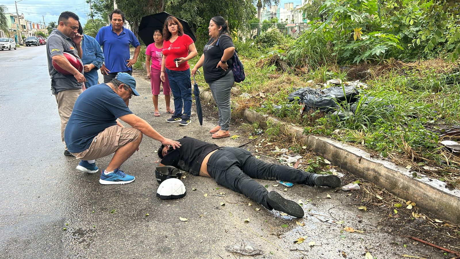 Cancún (Marcrix Noticias).- Un joven identificado como Carlos Abraham Paul Estrella derrapó su motocicleta la mañana de este miércoles, en el Fraccionamiento Los Héroes, ubicado en la Región 222 de Cancún.