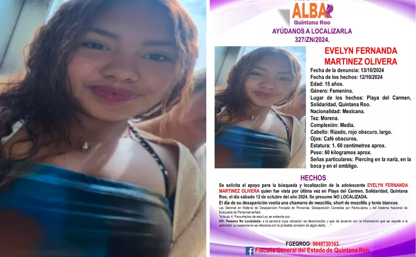 Playa del Carmen (Marcrix Noticias)-La desaparición de Evelyn Fernanda Martínez Olivera, una joven de 15 años, ha desencadenado una intensa búsqueda en la colonia Cristo Rey de Playa del Carmen. La adolescente salió de su domicilio la noche del pasado sábado sin informar a sus padres y sin llevar consigo su teléfono celular, lo que ha dificultado su localización.