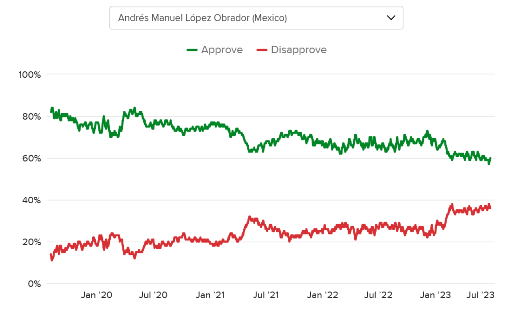 Datos de Morning Consult, una empresa de tecnología comercial y que realiza sondeos semanales en 22 países para conocer la aprobación ciudadana al presidente en turno, revelan el incremento en la tasa de desaprobación a la gestión del mandatario mexicano a partir de enero pasado.
