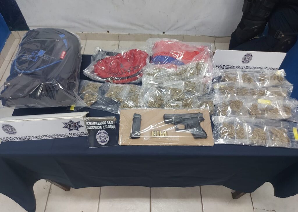 Luego de una inspección de seguridad al vehículo y a los ahora detenidos, los policías aseguraron un total de 60 envoltorios con lo que parece ser marihuana, asímismo, a Ramón “N” le fue asegurada un arma de fuego, tipo escuadra abastecida con 6 cartuchos útiles, por lo que los cinco sujetos que podrían están posiblemente vinculadas a otros delitos, fueron puestos a disposición de Fiscalía Especializada en Delitos Contra la Salud en su Modalidad de Narcomenudeo, en donde se realizarán las investigaciones correspondientes y determinará su situación legal.