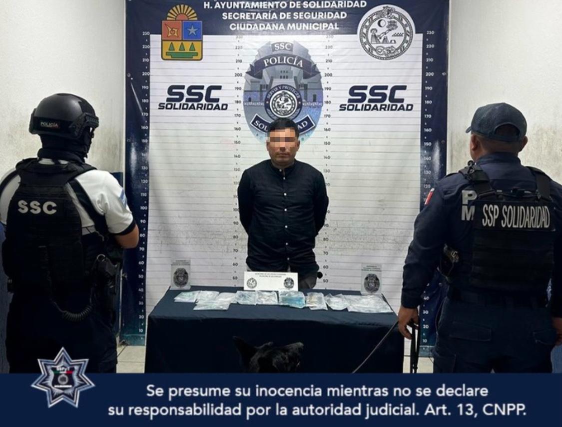 Playa del Carmen (Marcrix Noticias).- Policías de Solidaridad detuvieron a un sujeto por presuntos delitos contra la salud.