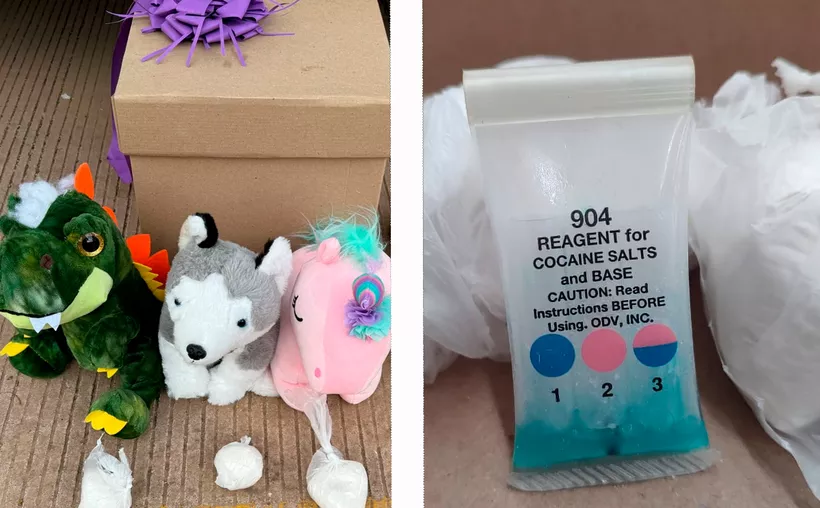 • Caja 2: Destinada a Mexicali, Baja California. Contenía tres muñecos de peluche con drogas escondidas en su interior.