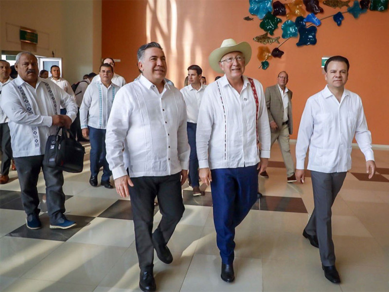 De entrada, el mandatario sinaloense le agradeció al embajador Ken Salazar que Estados Unidos entregará una certificación a los pescadores para la exportación de camarón silvestre, gracias al resultado de las tareas bilaterales de inspección y conservación.