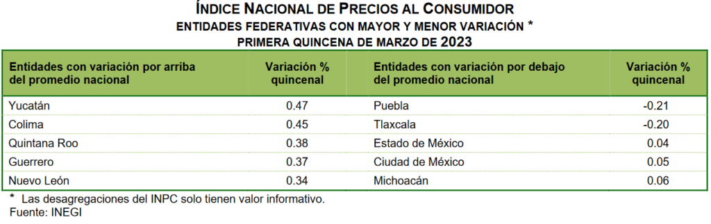 Yucatán es la entidad del sur sureste del país con las mayores variaciones al alza en el índice de inflación, con un incremento de 0.4 en la primera quincena de marzo, seguida de Quintana Roo y Guerrero, con un aumento de 0.3 por ciento.