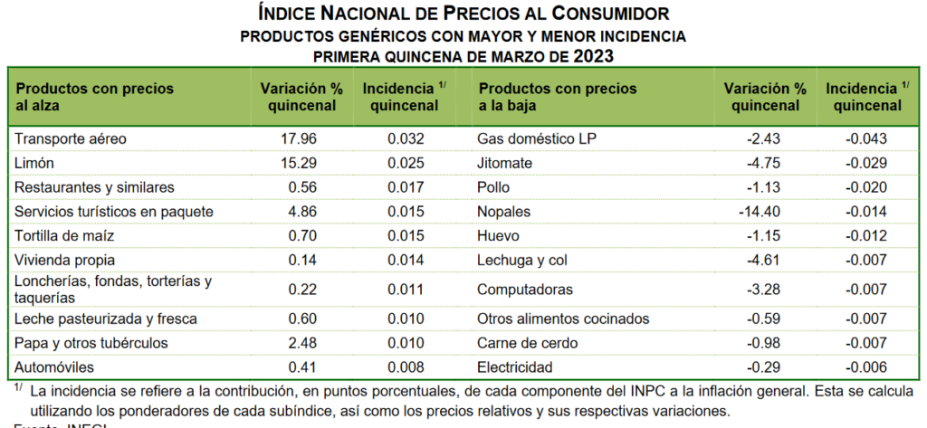 Por el contrario, los productos cuyos precios cayeron en la primera quincena de marzo fueron los nopales, con una baja de 14.4 por ciento, así como el jitomate, con un descenso de 4.7 por ciento, y la lechuga y la col, de 4.6 por ciento.