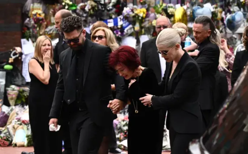 La familia Osbourne, encabezada por su esposa Sharon, acompañada de sus hijos Kelly, Jack, Aimee y Louis, caminó vestida de riguroso negro por las calles de Birmingham, mientras miles de fanáticos lloraban, aplaudían y lanzaban flores al paso de la procesión fúnebre.