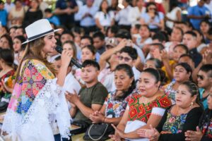 Acompañada del presidente municipal de Tulum, Diego Castañón Trejo, Mara Lezama destacó que este gobierno humanista con corazón feminista, ha implementado más de 20 programas para el impulso de la labor artesanal, de cultura alimentaria y turismo de base comunitaria donde participan diversas secretarías de manera transversal, destacando “Artesanas del Bienestar”, “Mujer es Emprender”, “Apoyo a Proyectos de Cultura Comunitaria y Alimentaria”, “Hilando Saberes”.