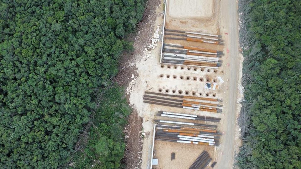 Las primeras pilas de concreto y acero empezaron a atravesar el sistema de cavernas y cenotes