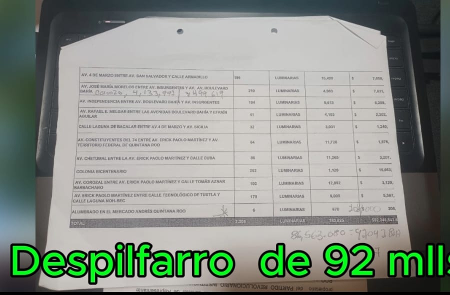 Paco Ortega Lizarraga, ex regidor y miembro del Comité del Patrimonio Cultural e Histórico de Chetumal, a través de un video, presentó pruebas de que la actual presidenta municipal Yensunni Martínez, ha despilfarrado y utilizado a su personal conveniencia casi 100 millones de pesos.