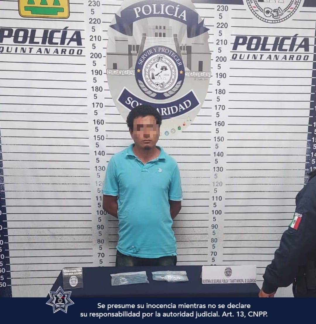 Playa del Carmen (Marcrix Noticias).- Policías de la Secretaría de Seguridad Pública y Tránsito Municipal de Solidaridad aseguraron a un sujeto en posesión de 120 bolsitas con posibles narcóticos en la colonia Colosio.