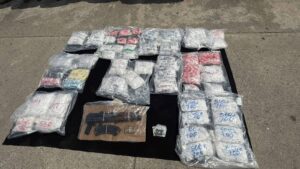 Las fuerzas estatales y federales lograron ingresar al inmueble, donde hallaron paquetes con sustancias cristalinas, blancas y pastillas de colores, metanfetamina y cocaína, listas para su comercialización.