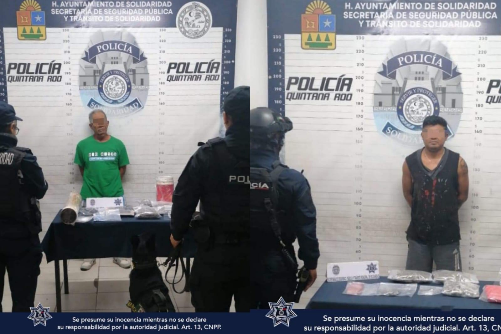 Playa del Carmen(Marcrix Noticias).- Policías Municipales aseguraron a 2 sujetos en distintos hechos, dos armas de fuego y posibles narcóticos como resultado de la respuesta inmediata durante las acciones de vigilancia permanente en las colonias.