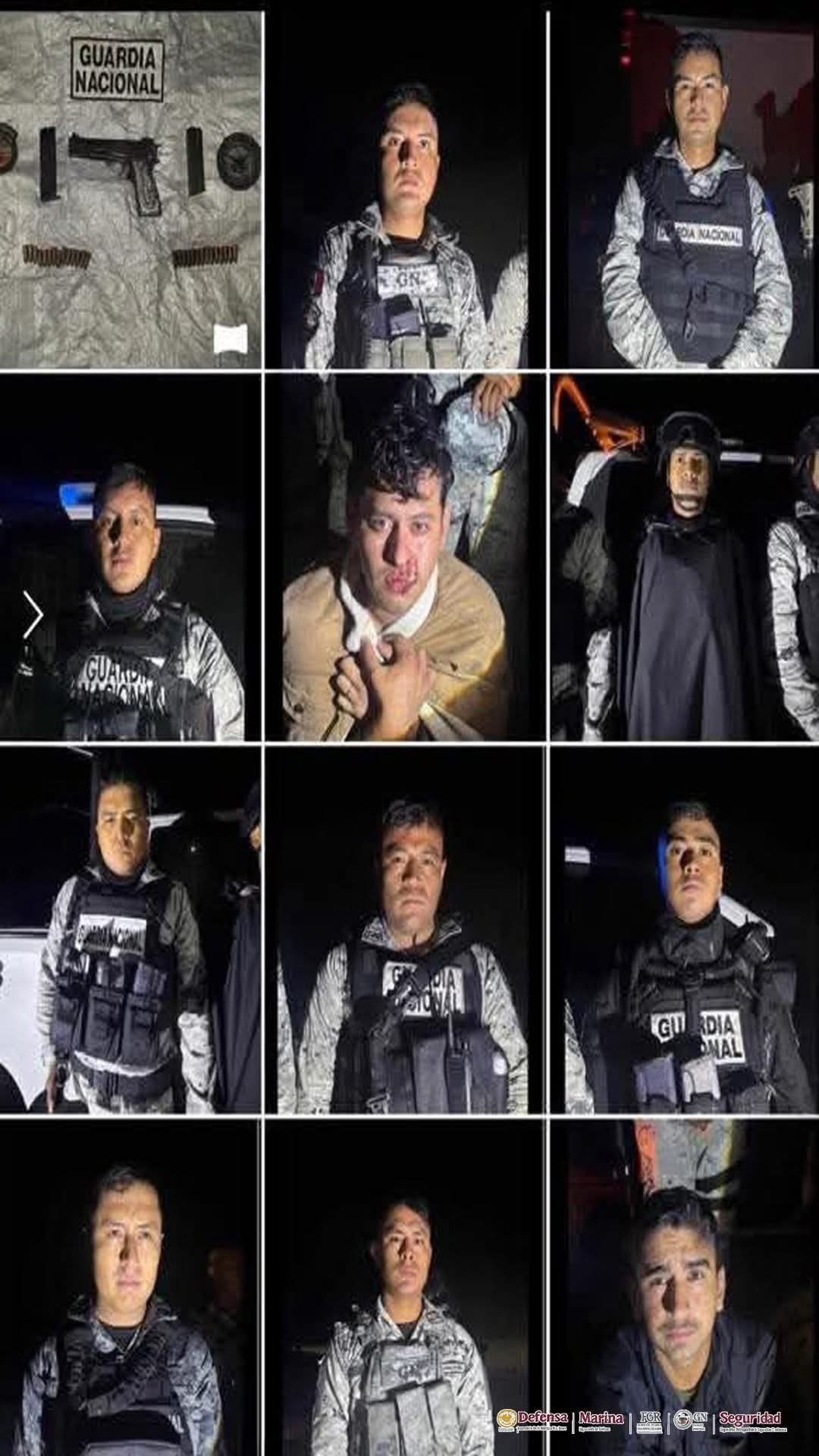 En el lugar fueron aseguradas dos patrullas oficiales de la Guardia Nacional, una camioneta Nissan Rogue, dos camionetas tipo Pick Up Silverado y una pipa, así como armas de cargo. Varios de los presuntos implicados lograron escapar.