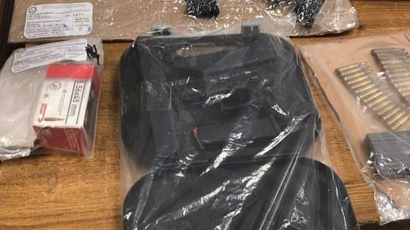 Además 57 cartuchos útiles calibre 5.56 milímetros; 10 cartuchos útiles calibre .223 milímetros, tres cartuchos útiles calibre 9 milímetros y 94 gramos con ocho miligramos de marihuana.