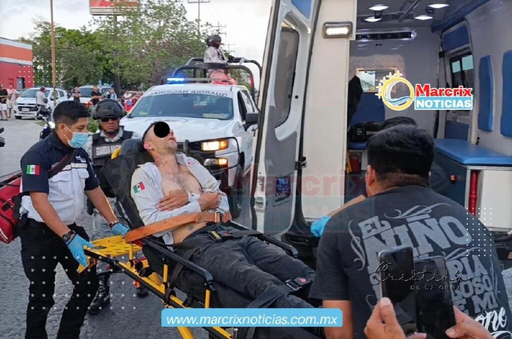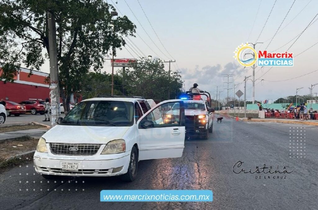 En el cruce con la avenida Chac-Mool, los oficiales rodearon la camioneta y lograron rescatar a la víctima, quien tuvo que ser atendida por paramédicos y trasladada a un hospital, debido a que presentaba golpes.