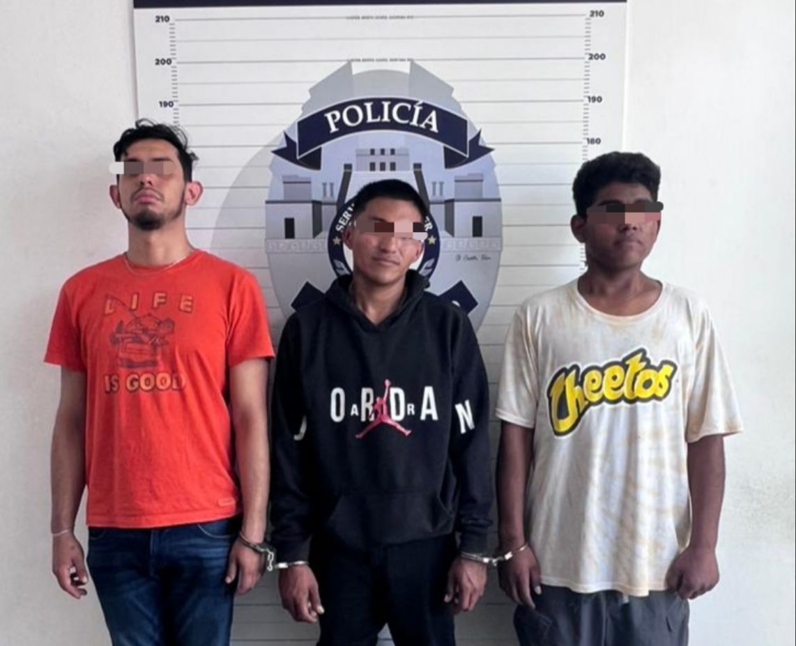 Cancún(Marcrix Noticias).- Elementos de la Secretaría Municipal de Seguridad Ciudadana y Tránsito de Benito Juárez, detuvieron a tres masculinos que se identificaron como Irving “L”, Pablo Enrique “E” y Marcos Geovany “S”, por el delito de portación de arma prohibida.