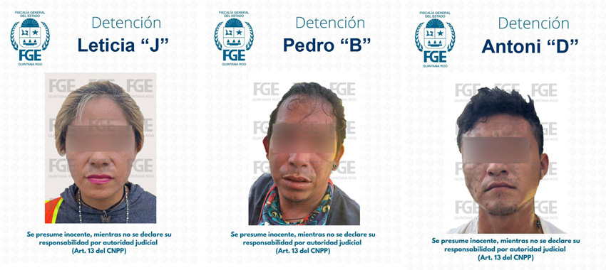 *Antonio “D”, Pedro “B” y Leticia “J” son señalados por su probable participación en el hecho ocurrido el 6 de agosto de 2022 en el municipio de Puerto Morelos.