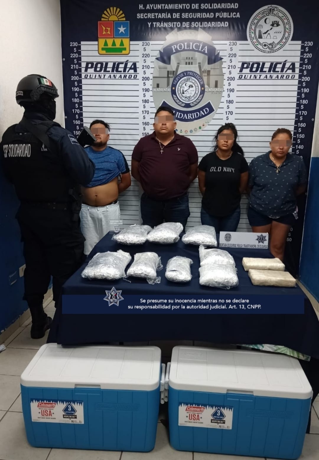 Playa del Carmen (Marcrix Noticias).- Como resultado de un operativo de vigilancia, policías de la Secretaría de Seguridad Pública y Tránsito Municipal de Solidaridad aseguraron a 4 personas en posesión de 10 paquetes con posibles narcóticos en la colonia Ejido.