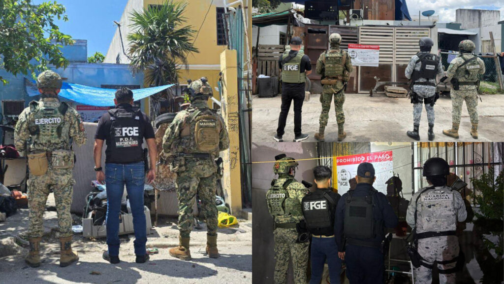 Playa del Carmen (Marcrix Noticias).– La Fiscalía General del Estado de Quintana Roo informó que, en acciones coordinadas con fuerzas federales y estatales, se cumplimentaron tres órdenes de cateo en los municipios de Playa del Carmen, Othón P. Blanco y Benito Juárez, que derivaron en la detención de 5 personas y el aseguramiento de supuestas drogas, vehículos y equipo de vigilancia.