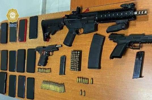 Por tal motivo y con las medidas de precaución necesarias, se realizó un despliegue operativo estratégico en la colonia El Rodeo, de la alcaldía Iztapalapa, donde fueron detenidas tres mujeres y cuatro hombres, a quienes se les aseguraron 15 teléfonos celulares, dos armas cortas y una larga con cargadores abastecidos, además de cartuchos útiles.
