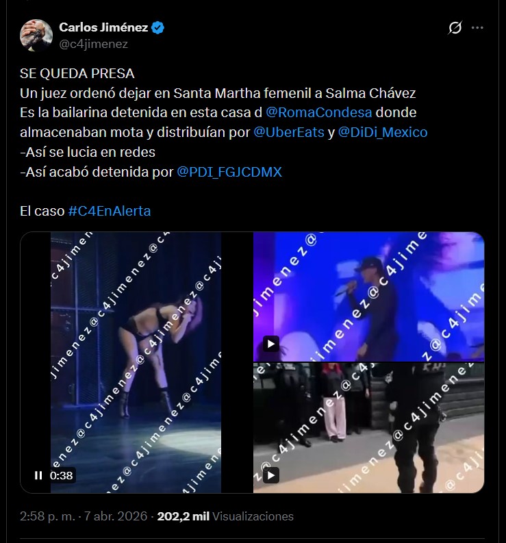 El caso tomó relevancia luego de que se revelara que Salma “N” también se desempeñaba como bailarina del cantante de corridos tumbados Peso Pluma, según información difundida por el periodista Carlos Jiménez.