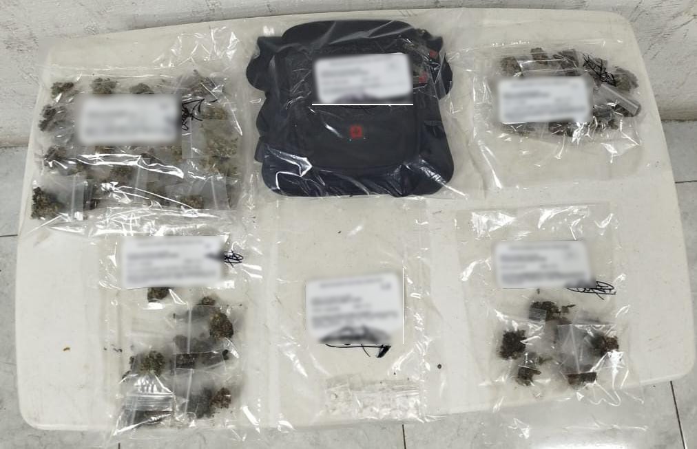 Durante la inspección reglamentaria les encontraron hierba verde y seca parecida a la marihuana y polvo blanco con características propias de la cocaína.