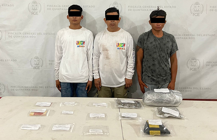 En una primera acción, elementos de la Policía de Investigación, adscritos a la Fiscalía Especializada en Combate al Delito de Narcomenudeo, detuvieron a Leonardo “N”, Kevin Neftalí “N” y Félix Antonio “N”, en un pasillo aledaño a un negocio en la Supermanzana 28 del municipio de Benito Juárez.
