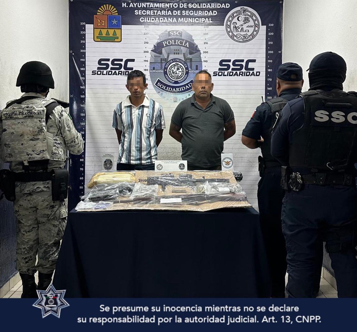 Playa del Carmen (Marcrix Noticias)-Durante un operativo conjunto entre los tres niveles de gobierno, agentes de la Policía Preventiva aseguraron a Rubén “N,” de 47 años, originario de Tabasco, y Elio “N,” de 32 años, originario de Veracruz, en el fraccionamiento Villas del Sol.