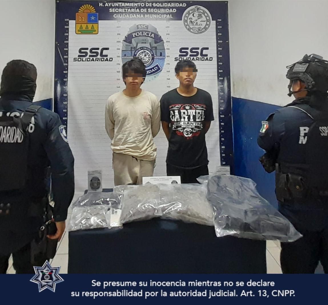 Christopher “N,” de 18 años, originario de Colombia, y Carlos “N,” de 22 años, de Cancún, fueron puestos detenidos y puestos a disposición de la Fiscalía Especializada en Delitos Contra la Salud en su Modalidad de Narcomenudeo por presuntos delitos contra la salud.