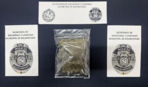 Durante la revisión, se le encontró una bolsa que contenía hierba seca con las características a la marihuana.