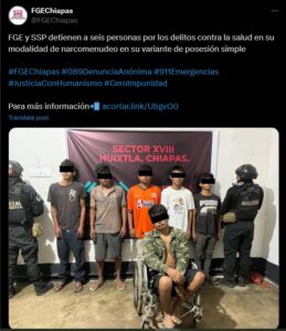 Chiapas (Marcrix, Noticias).- La Fiscalía General del Estado (FGE) de Chiapas, junto con la Secretaría de Seguridad Pública (SSP), realizó un operativo en Acacoyagua, donde seis personas fueron arrestadas, entre ellas Brayan “N”, un hombre con discapacidad y presunto líder de una banda criminal dedicada al narcotráfico y extorsión en la región.