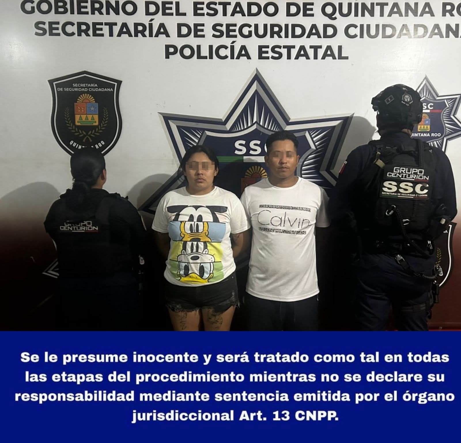 Cancún(Marcrix Noticias).- Una pareja fue asegurada por elementos del Grupo Centurión de la Secretaría de Seguridad Ciudadana, presuntamente vinculada con un ataque a balazos contra una tienda de conveniencia GOmart en la Región 234.