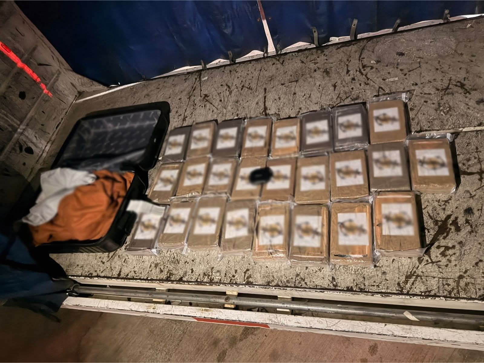 Al revisar la maleta, las autoridades localizaron 25 paquetes con una sustancia de color blanco con características similares a la cocaína, por lo que el pasajero fue asegurado cuando pretendía abordar un vuelo.