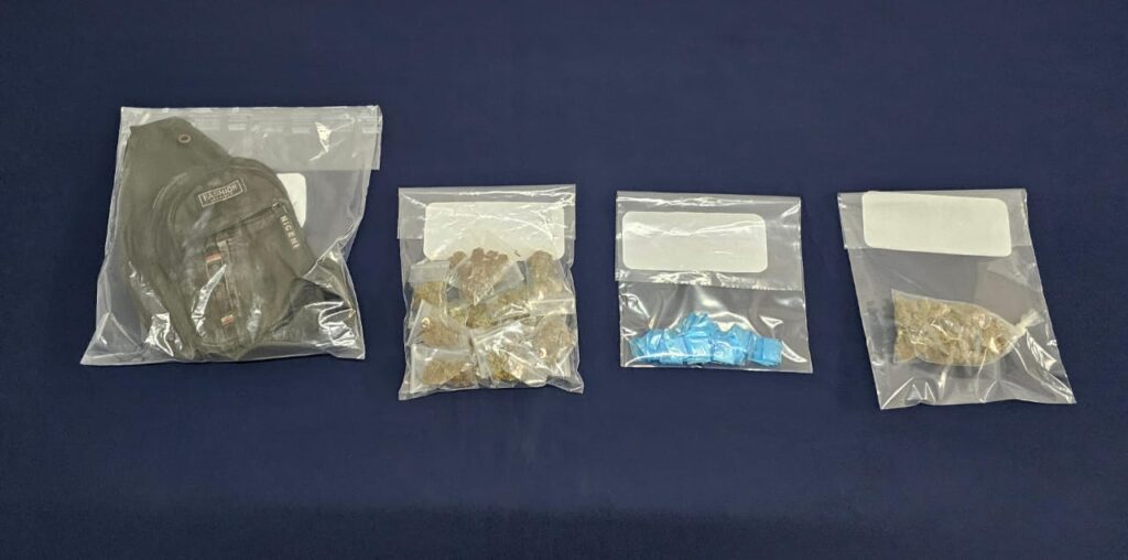 También se le encontró 40 bolsitas de plástico color azul transparente tipo “ziploc” con fragmentos sólidos transparentes con las características del cristal.