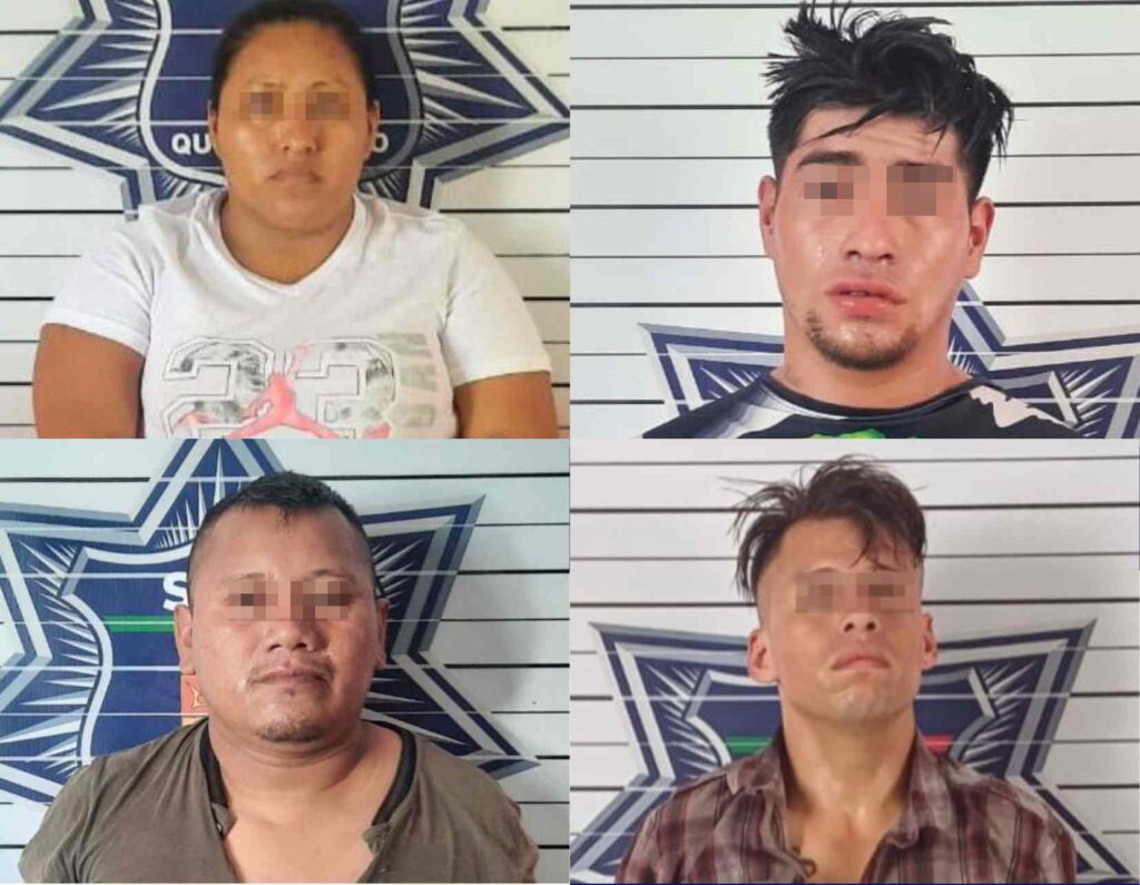 Cancún, Q. Roo (Marcrix Noticias).– Fidel “N”, Alizbethiana “N”, Juan “N” y Emmanuel “N”, fueron detenidos por presunta implicación en delitos contra la salud en un fraccionamiento de esta ciudad, cuando intercambiaban bolsitas transparentes con vegetal similar a la marihuana.