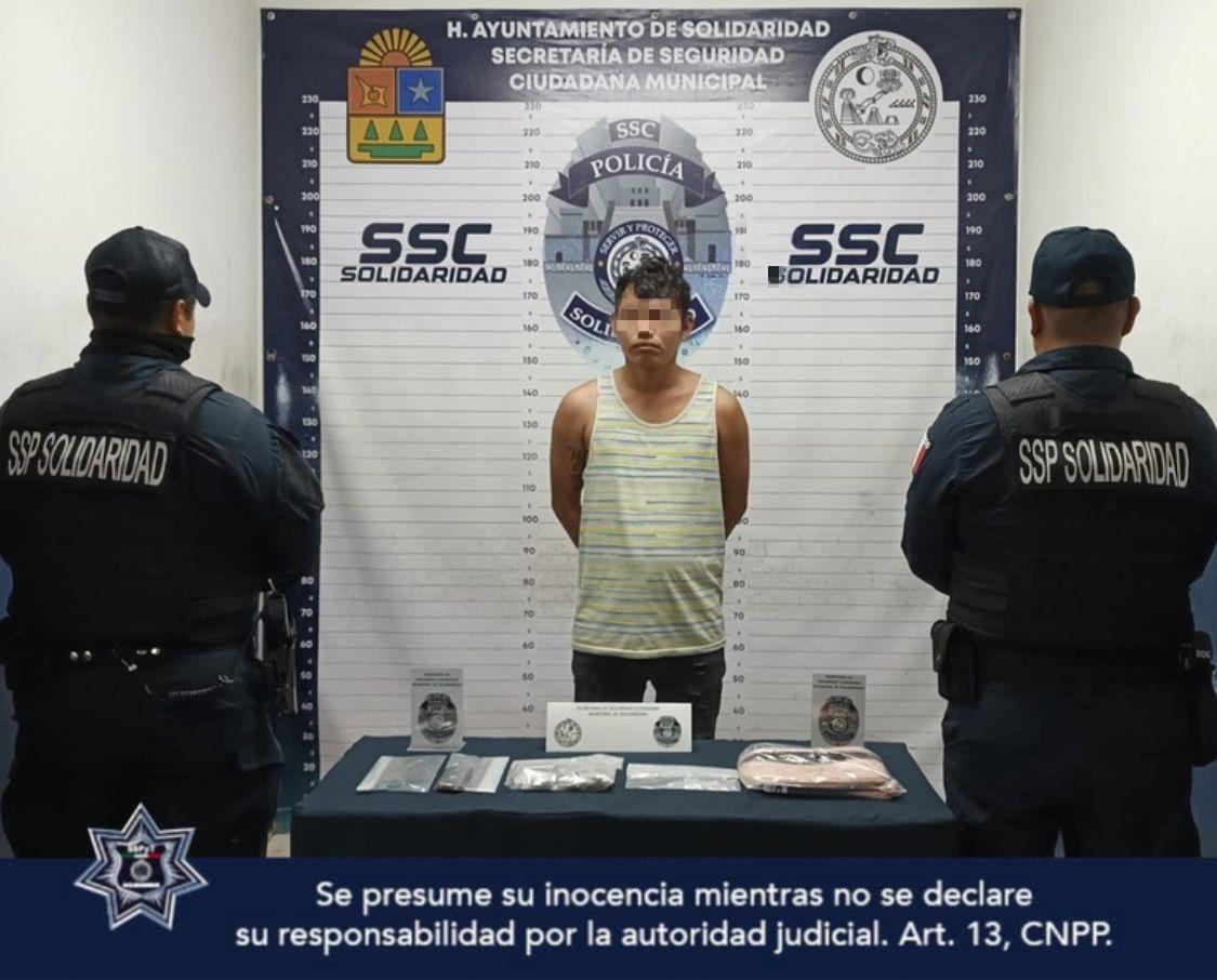 Playa del Carmen (Marcrix Noticias).- Policías de la Secretaría de Seguridad Ciudadana Municipal de Solidaridad, detuvieron a una persona del sexo masculino con 18 dosis de posibles narcóticos.